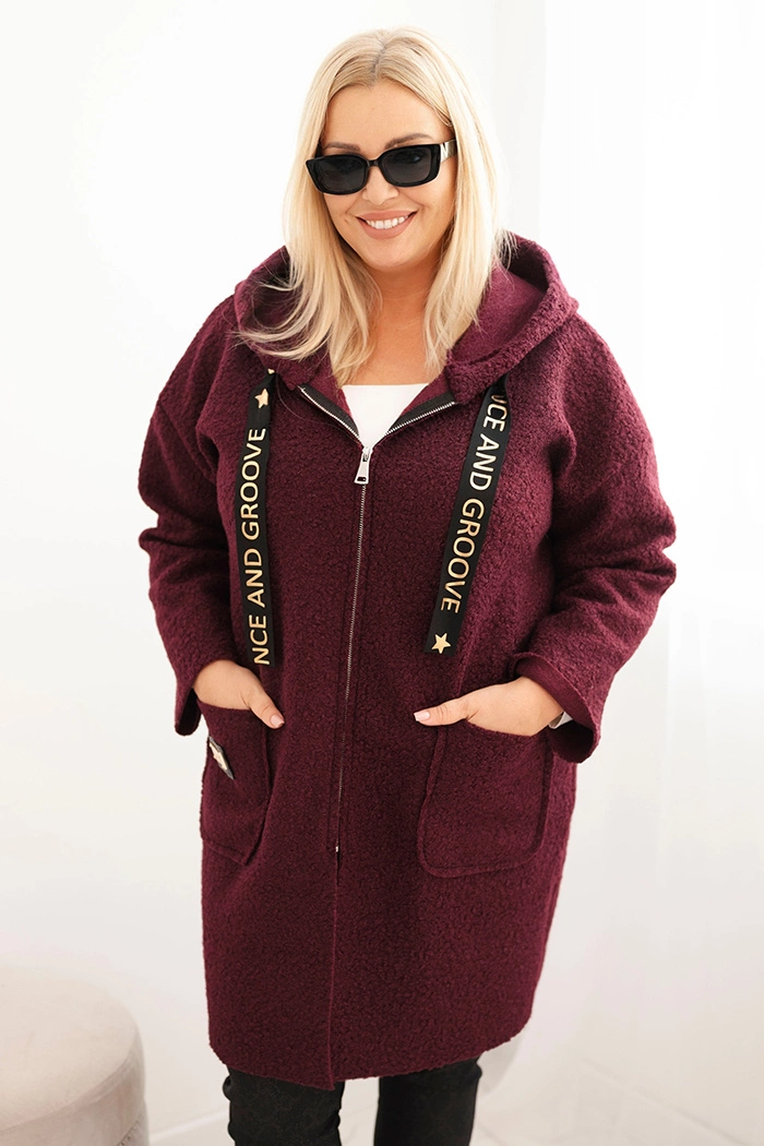 Płaszcz damski Plus Size ze sztucznego baranka z kapturem i kieszeniami śliwkowy to idealny wybór na chłodniejsze dni. Wykonana z miękkiego, ciepłego materiału o strukturze „baranka”, zapewnia komfort noszenia i modny, swobodny look. Bluza posiada praktyczny kaptur z ozdobnymi trokami, duże kieszenie z przodu oraz zamek błyskawiczny ułatwiający zakładanie.
