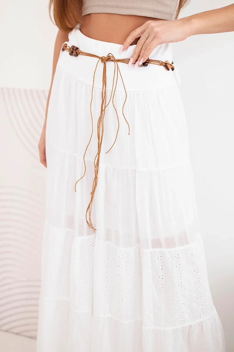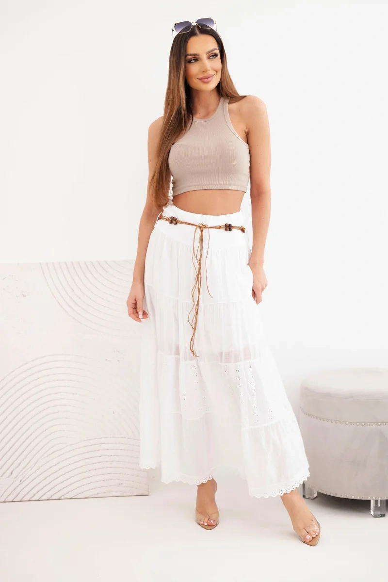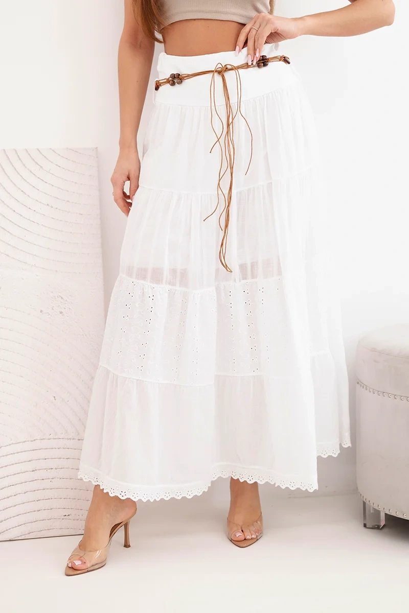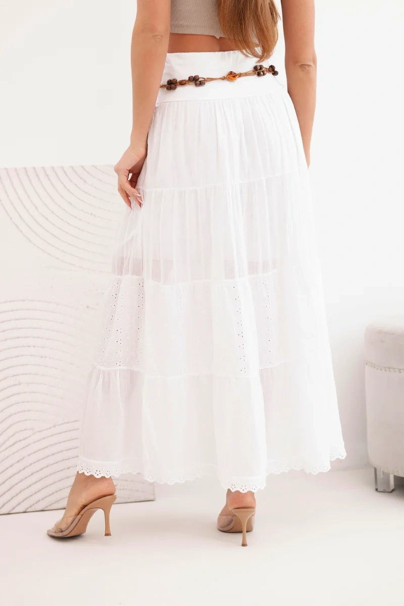 Spódnica damska maxi bawełniana z ażurowym haftem i elastycznym pasem biała