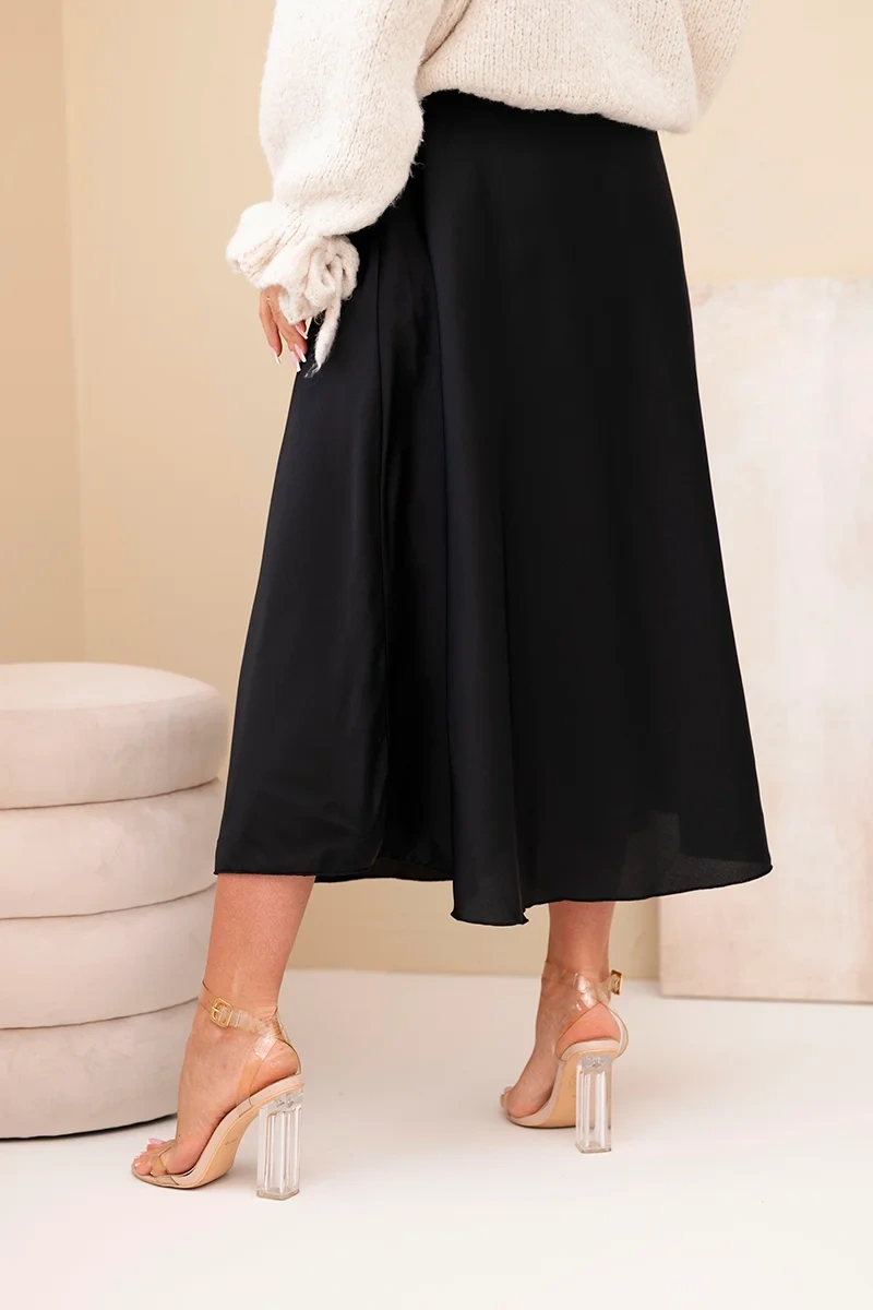 Spódnica damska wiskozowa rozkloszowana czarna to doskonały wybór dla kobiet ceniących styl, komfort i elegancję. Wykonana z wysokiej jakości, lejącej wiskozy z dodatkiem elastanu, pięknie układa się na sylwetce i zapewnia swobodę ruchów. Jej rozkloszowany krój dodaje lekkości i kobiecego uroku, dzięki czemu świetnie sprawdzi się zarówno na co dzień, jak i na specjalne okazje – od spotkań ze znajomymi po bardziej formalne wyjścia.