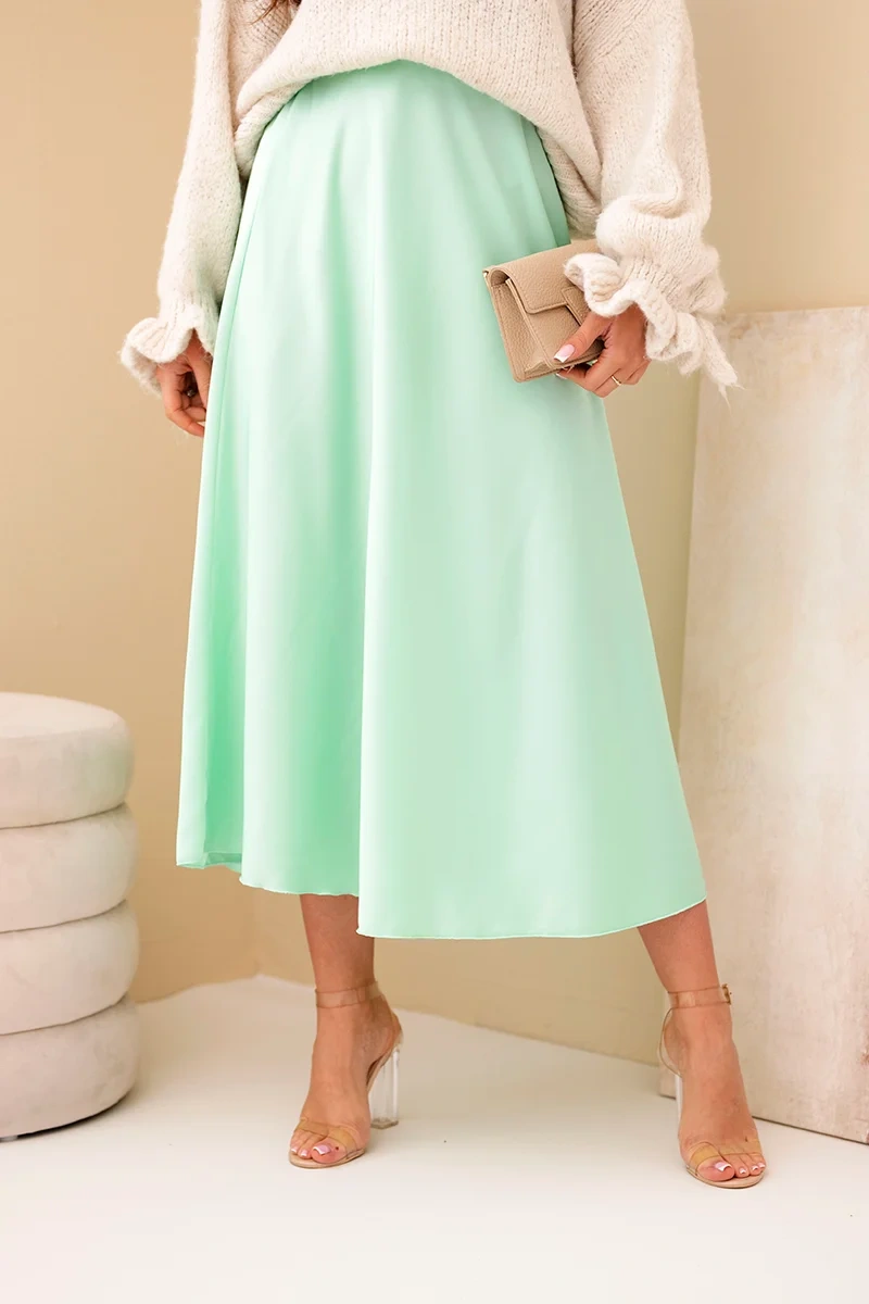 Spódnica damska wiskozowa rozkloszowana miętowa to doskonały wybór dla kobiet ceniących styl, komfort i elegancję. Wykonana z wysokiej jakości, lejącej wiskozy z dodatkiem elastanu, pięknie układa się na sylwetce i zapewnia swobodę ruchów. Jej rozkloszowany krój dodaje lekkości i kobiecego uroku, dzięki czemu świetnie sprawdzi się zarówno na co dzień, jak i na specjalne okazje – od spotkań ze znajomymi po bardziej formalne wyjścia.