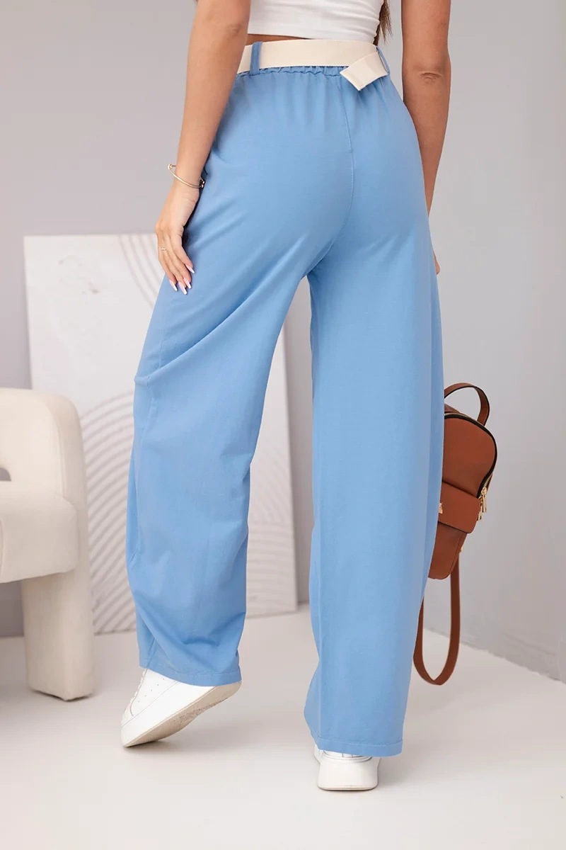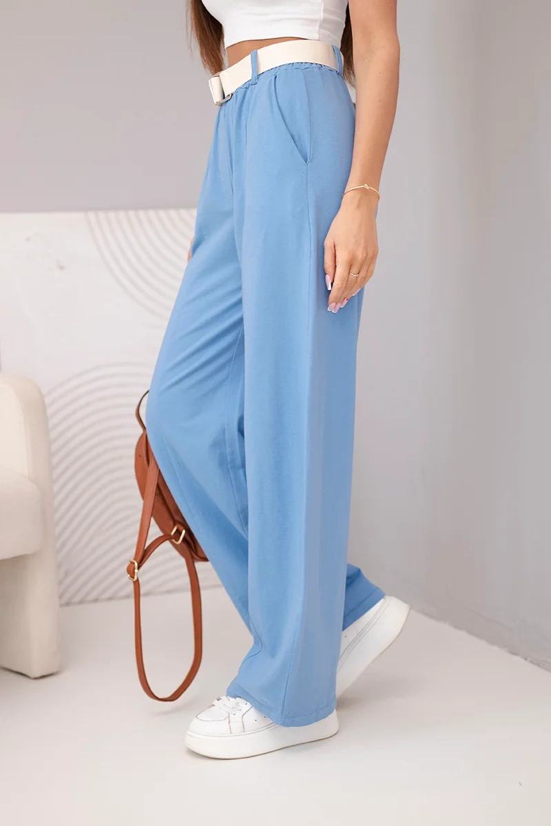 Spodnie damskie bawełniane z szeroką nogawką i paskiem jeansowe Stylowe spodnie damskie o luźnym, szerokim fasonie to doskonała propozycja dla kobiet, które cenią wygodę oraz modny, wyrazisty wygląd. Model z wysokim stanem i elastycznym pasem świetnie dopasowuje się do sylwetki, podkreślając talię i zapewniając komfort noszenia przez cały dzień. To idealny wybór do codziennych stylizacji, jak i bardziej odważnych, letnich zestawów.