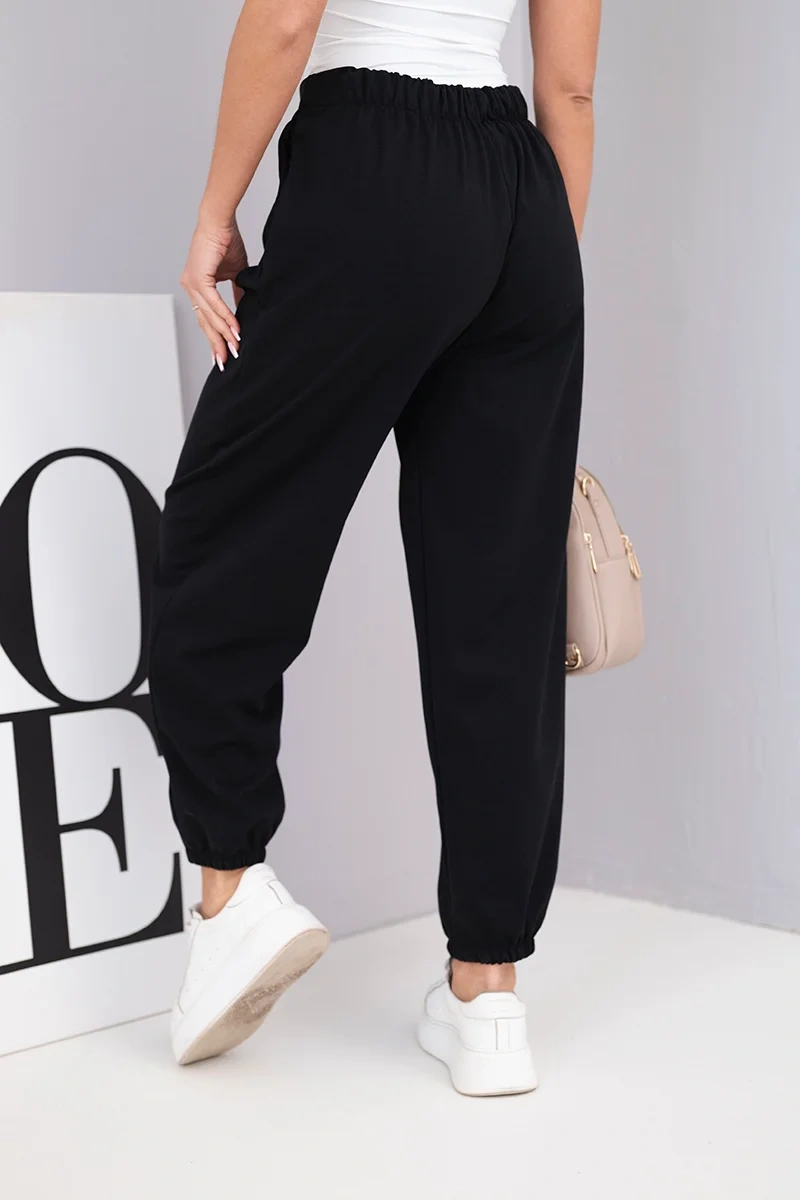 Spodnie damskie bawełniane z wysokim stanem i ozdobnym guzikiem czarne Te eleganckie spodnie damskie z wysokim stanem to propozycja dla kobiet, które cenią sobie połączenie komfortu i stylu. Luźny fason z delikatnie zwężanymi nogawkami zakończonymi ściągaczem sprawia, że spodnie pięknie układają się na sylwetce i pasują do wielu stylizacji – zarówno codziennych, jak i bardziej eleganckich. Ozdobny guzik z przodu dodaje im uroku i klasycznego wykończenia. Świetnie komponują się z bluzkami, topami czy marynarkami, tworząc modny i kobiecy look.