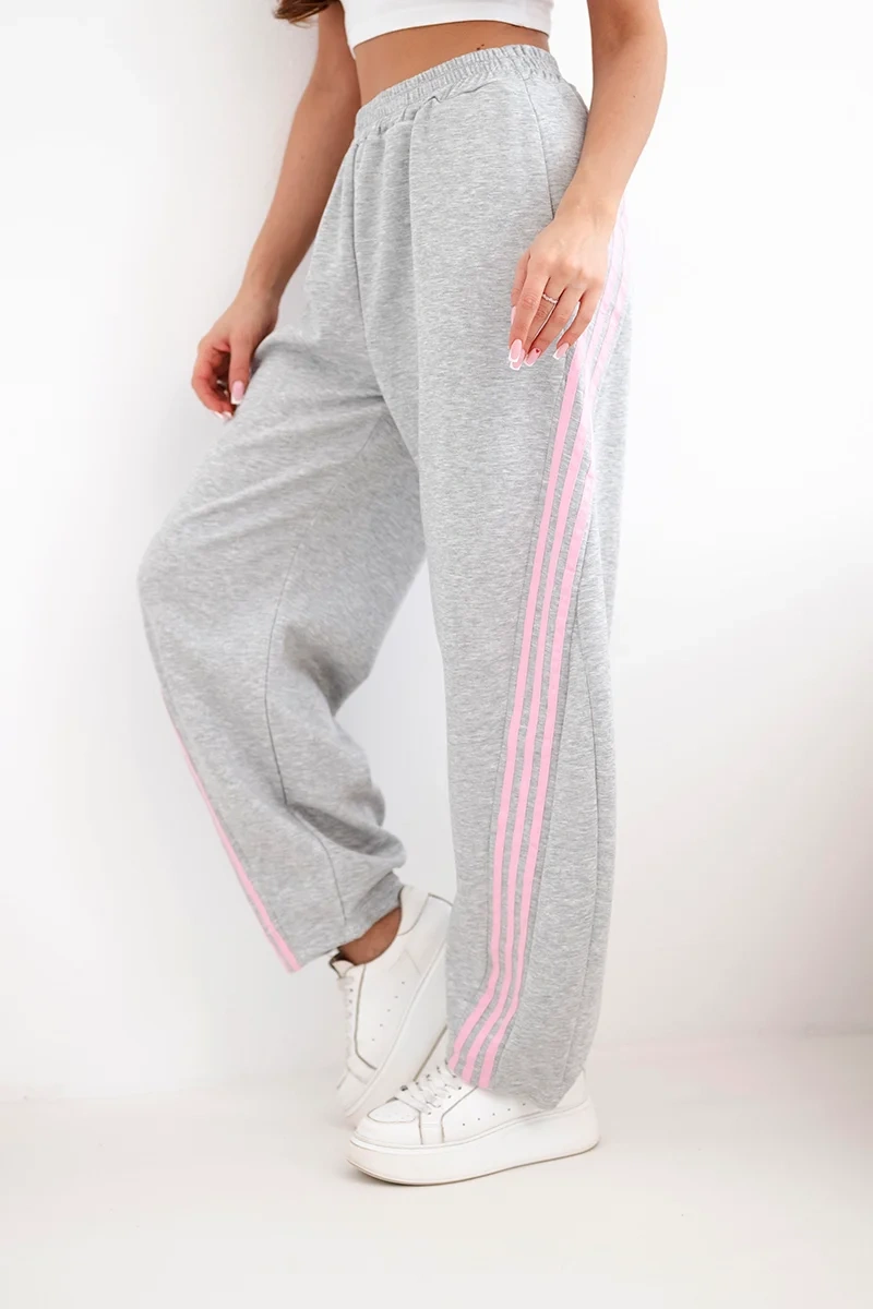 Spodnie damskie masełkowe z wiskozy z lampasem szare Stylowe spodnie damskie wiskozowe masełkowe to idealna propozycja dla kobiet ceniących wygodę i modny, sportowy styl. Model wykonany z miękkiej, przyjemnej w dotyku tkaniny z wysoką zawartością wiskozy doskonale dopasowuje się do sylwetki i zapewnia komfort przez cały dzień.