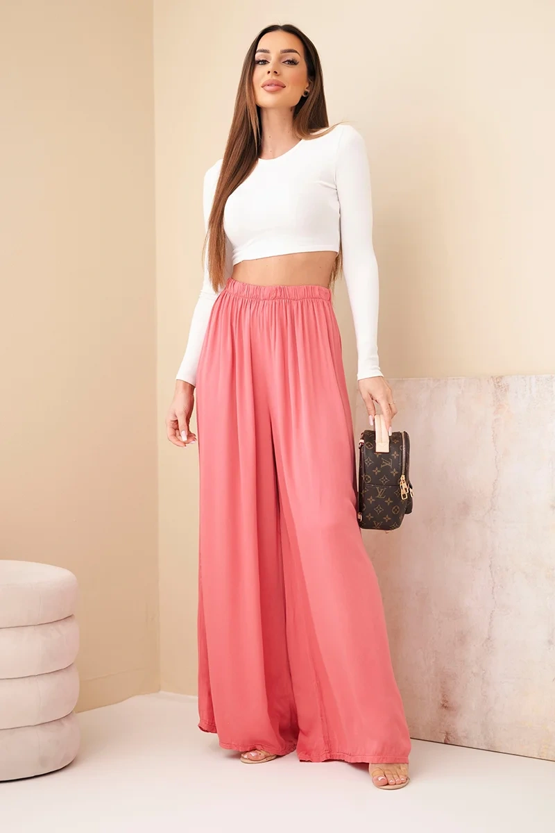 Napisz pierwszą opinię o „Spodnie damskie wiskozowe szerokie z gumką w pasie malinowe”