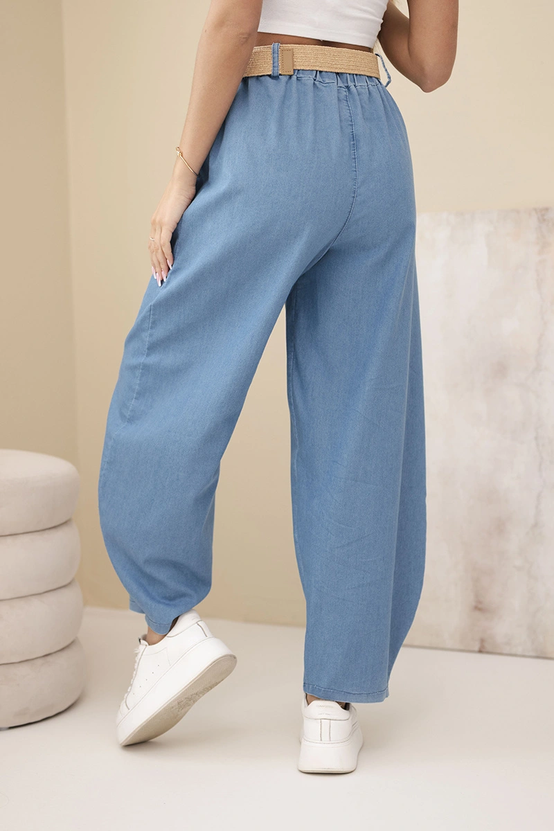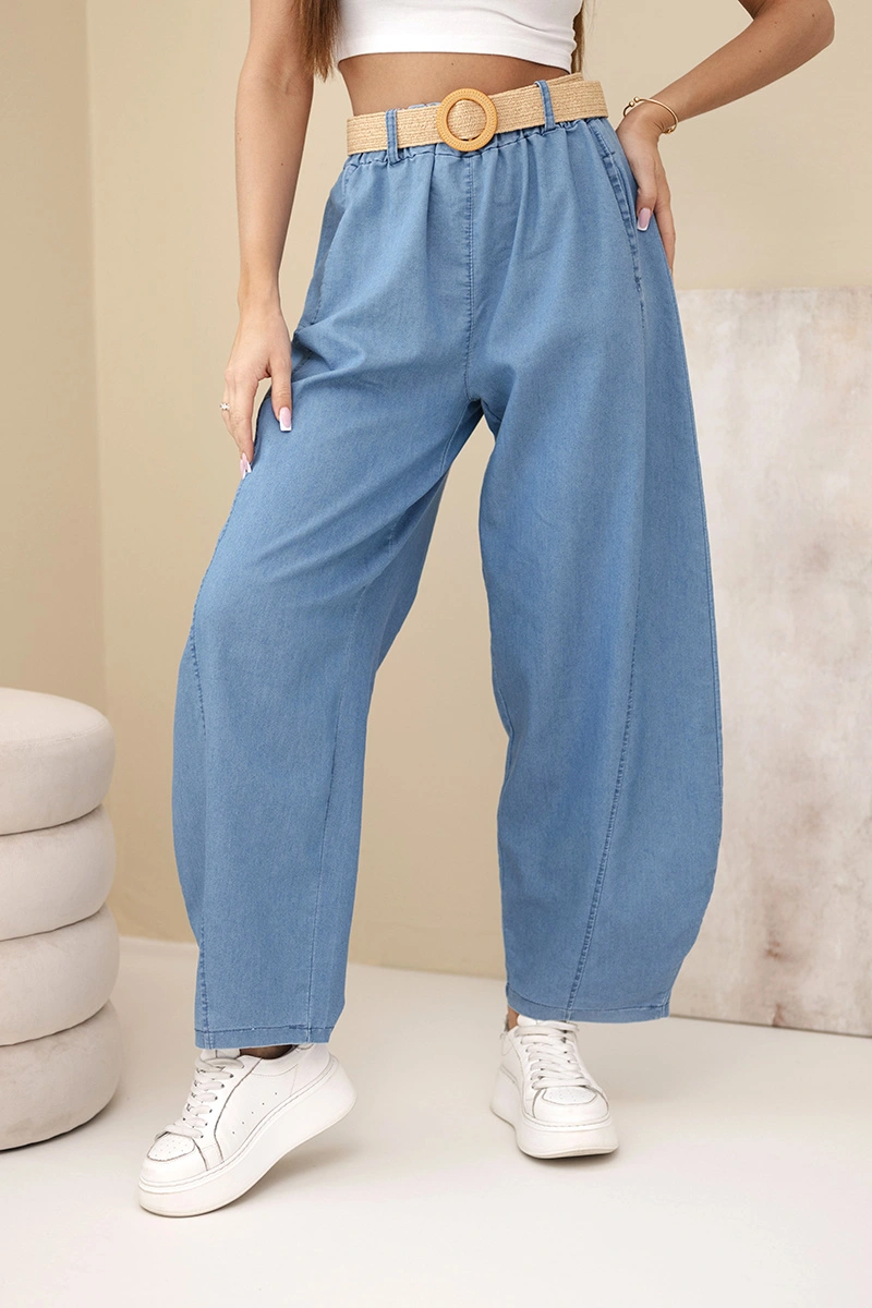 Spodnie damskie z szeroką nogawką i paskiem jasno jeansowe Modne spodnie damskie o luźnym, nowoczesnym fasonie to idealna propozycja dla kobiet ceniących wygodę i ponadczasowy styl. Model z szeroką nogawką pięknie układa się na sylwetce, zapewniając swobodę ruchów oraz wyjątkowy komfort noszenia. To doskonały wybór zarówno do codziennych stylizacji, jak i bardziej casualowych zestawów na spotkania czy wyjścia do miasta.