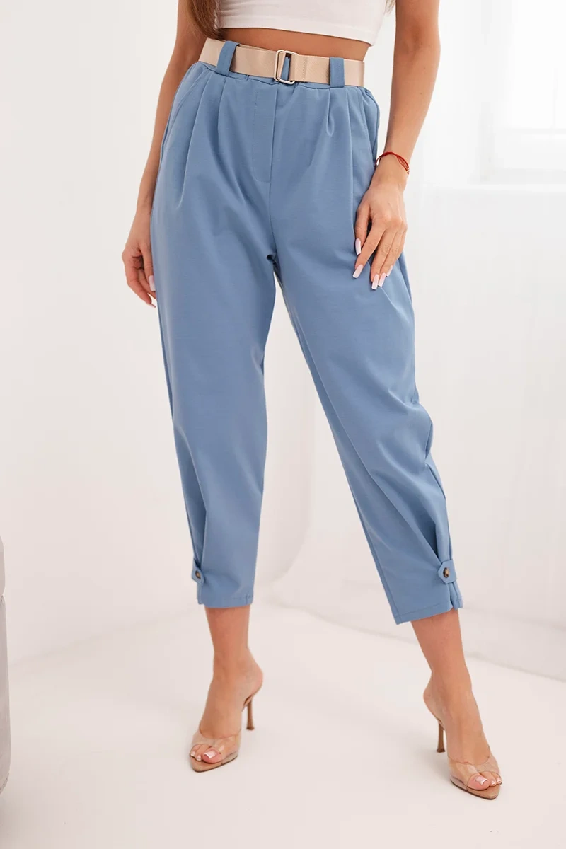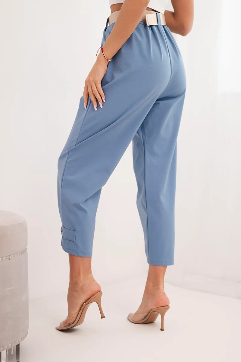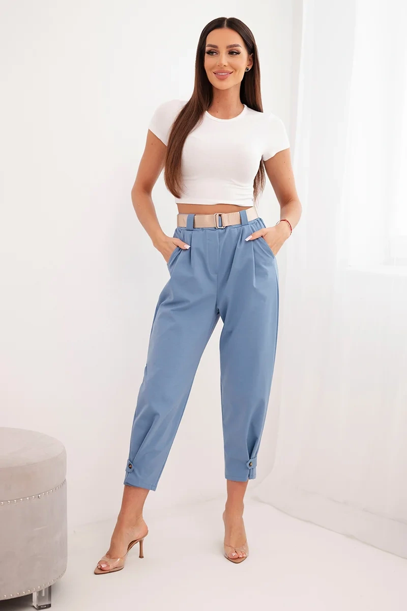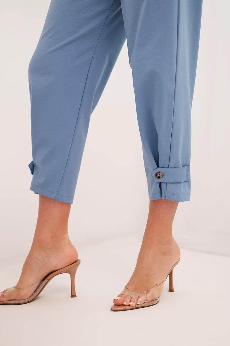 Spodnie Summer Punto z zapięciem na nogawkach jeansowe Spodnie Summer Punto z zapięciem na nogawkach to nowoczesna i stylowa propozycja, która łączy wygodę z oryginalnym designem. Wykonane z wysokiej jakości materiału, zapewniają komfort noszenia, jednocześnie podkreślając sylwetkę. Charakterystycznym elementem spodni jest zapięcie na nogawkach, które dodaje całości unikalnego, modnego akcentu. Ich klasyczny, ale dopracowany krój sprawia, że są one idealnym wyborem zarówno na co dzień, jak i na bardziej formalne okazje. Dzięki elastycznej talii i dopasowanemu fasonowi, spodnie te świetnie komponują się z różnymi stylizacjami – od casualowych po eleganckie. Rozmiar jest uniwersalny i będzie odpowiedni dla Pań noszących rozmiar S, M lub L.