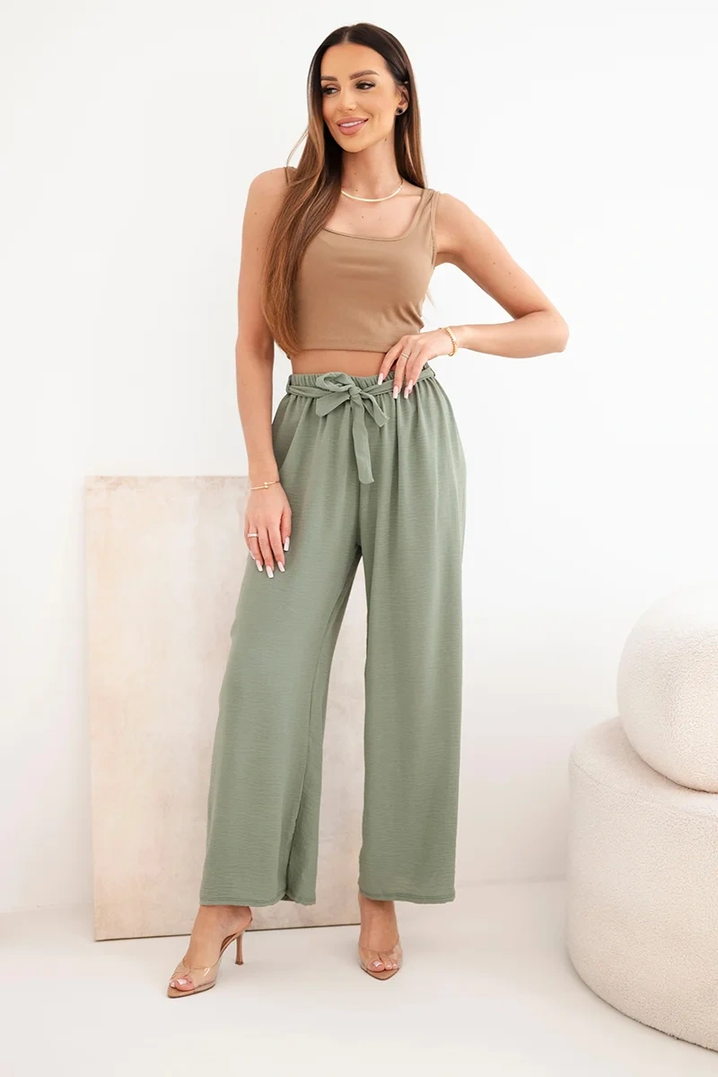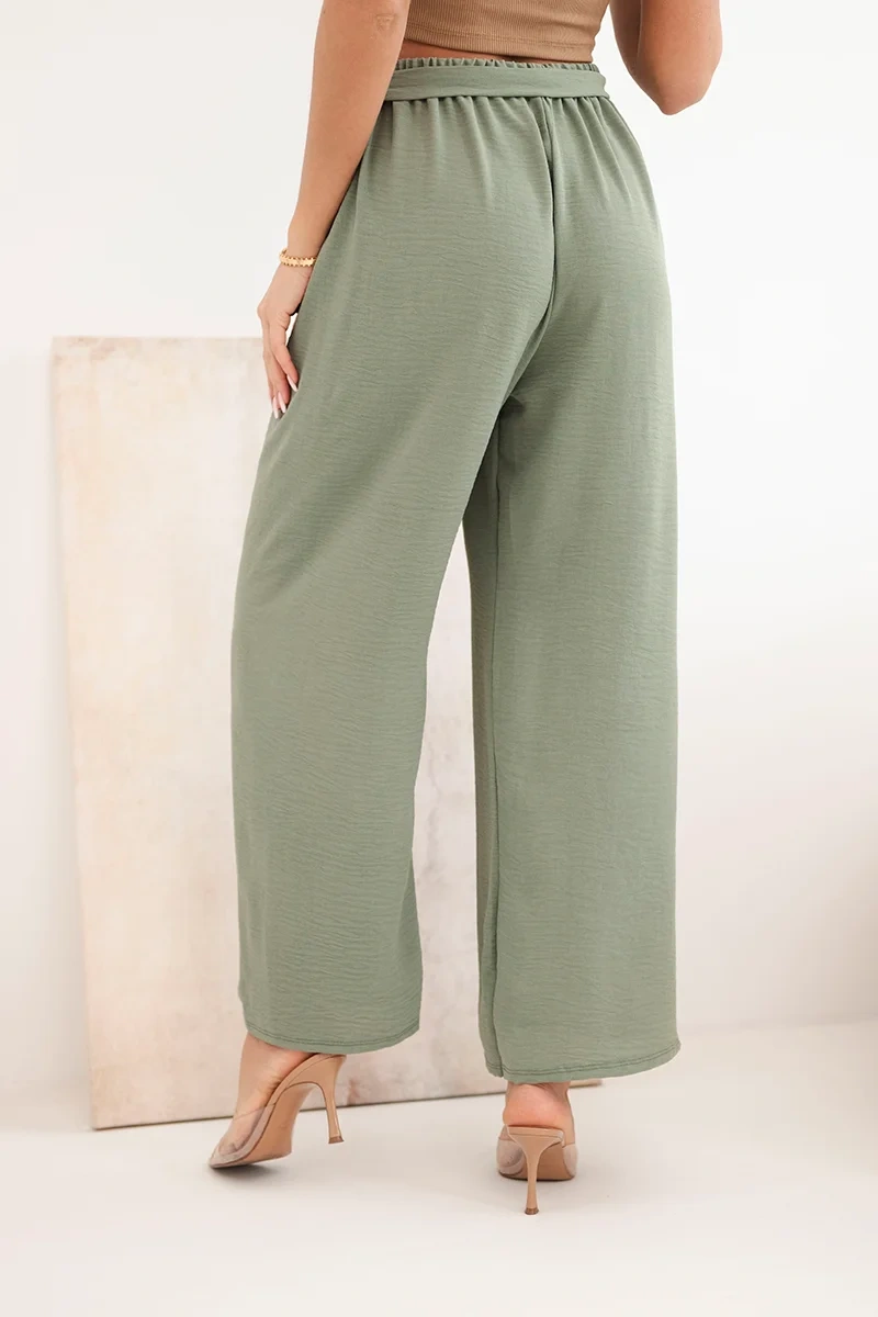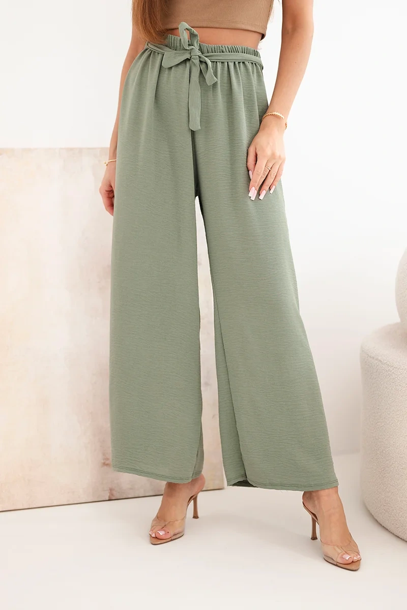 Spodnie z szeroką i wiązaniem w pasie jasne khaki