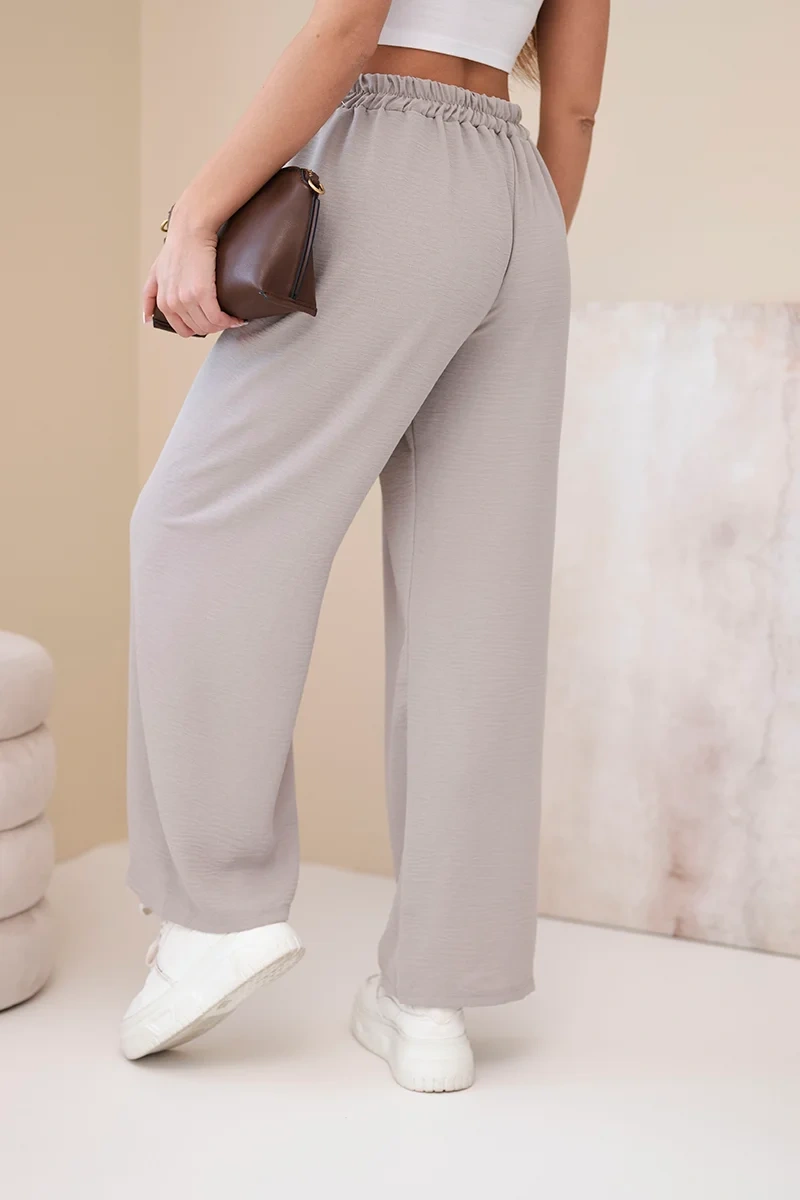 Spodnie z szeroką nogawką fango Spodnie z wiskozą z szeroką nogawką to wyjątkowy element garderoby, który łączy w sobie komfort i elegancję. Wykonane z lekkiego i przewiewnego materiału wiskozy, te spodnie gwarantują nie tylko swobodę ruchów, ale także zapewniają uczucie lekkości i świeżości przez cały dzień. Szeroka nogawka nadaje spodniom charakterystyczny, luźny fason, który jest zarówno modny, jak i wygodny. Ten element sprawia, że spodnie prezentują się niezwykle stylowo i efektownie, dodając oryginalności każdej stylizacji. Uniwersalny design spodni z szeroką nogawką sprawia, że doskonale pasują one do różnych okazji i stylizacji. Możesz nosić je zarówno do codziennych, luzackich outfitów, jak i do bardziej eleganckich zestawów na spotkania biznesowe czy wieczorne wyjścia. Spodnie z wiskozy z szeroką nogawką to idealny wybór dla kobiet, które cenią sobie wygodę i styl. Dzięki swojemu uniwersalnemu designowi i wysokiej jakości wykonania, te spodnie stanowią niezastąpiony element garderoby, który świetnie uzupełni każdą kolekcję ubrań. Rozmiar jest uniwersalny i będzie odpowiedni dla Pań noszących rozmiar S, M lub L.