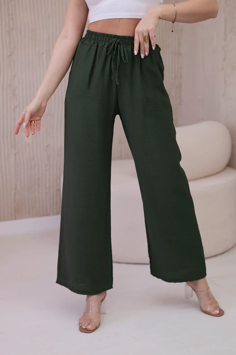Spodnie z wiskozy z szeroką nogawką to wyjątkowy element garderoby, który łączy w sobie komfort i elegancję. Wykonane z lekkiego i przewiewnego materiału wiskozy, te spodnie gwarantują nie tylko swobodę ruchów, ale także zapewniają uczucie lekkości i świeżości przez cały dzień. Szeroka nogawka nadaje spodniom charakterystyczny, luźny fason, który jest zarówno modny, jak i wygodny. Ten element sprawia, że spodnie prezentują się niezwykle stylowo i efektownie, dodając oryginalności każdej stylizacji. Uniwersalny design spodni z szeroką nogawką sprawia, że doskonale pasują one do różnych okazji i stylizacji. Możesz nosić je zarówno do codziennych, luzackich outfitów, jak i do bardziej eleganckich zestawów na spotkania biznesowe czy wieczorne wyjścia. Spodnie z wiskozy z szeroką nogawką to idealny wybór dla kobiet, które cenią sobie wygodę i styl. Dzięki swojemu uniwersalnemu designowi i wysokiej jakości wykonania, te spodnie stanowią niezastąpiony element garderoby, który świetnie uzupełni każdą kolekcję ubrań. Rozmiar jest uniwersalny i będzie odpowiedni dla Pań noszących rozmiar S, M lub L.