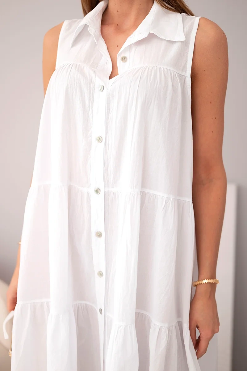Sukienka damska bawełniana koszulowa bez rękawów z guzikami biała
