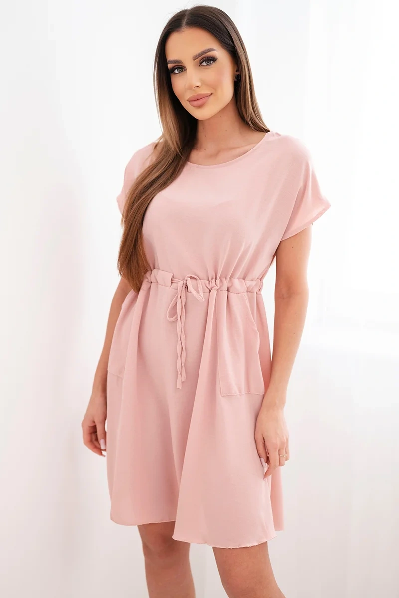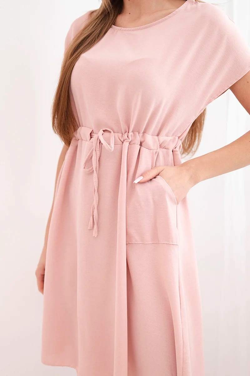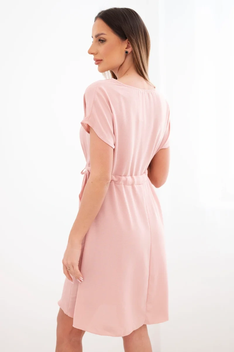 Sukienka damska z krótkim rękawem i wiązaniem w pasie ciemny pudrowy róż
