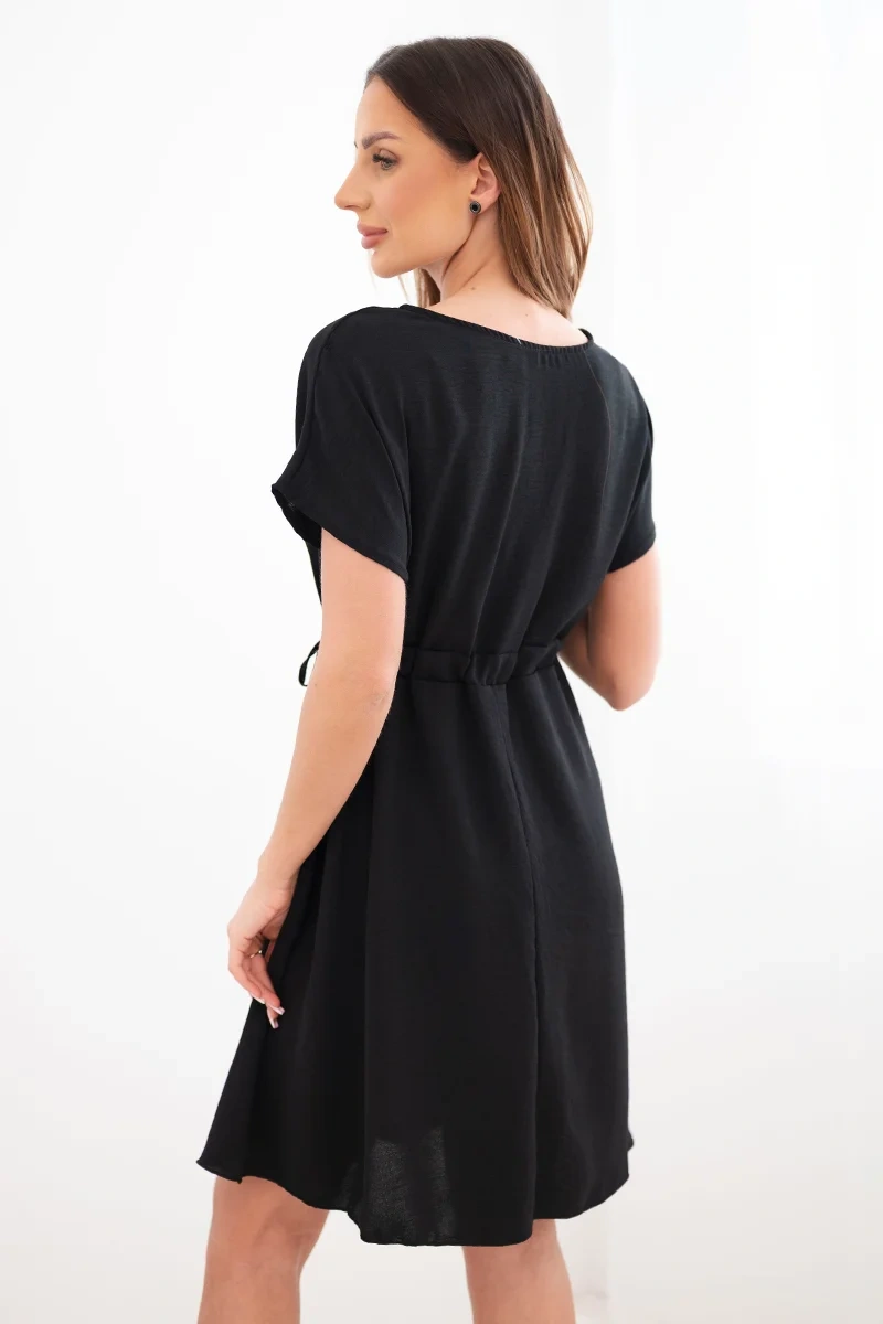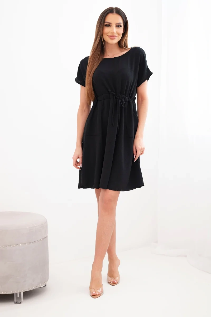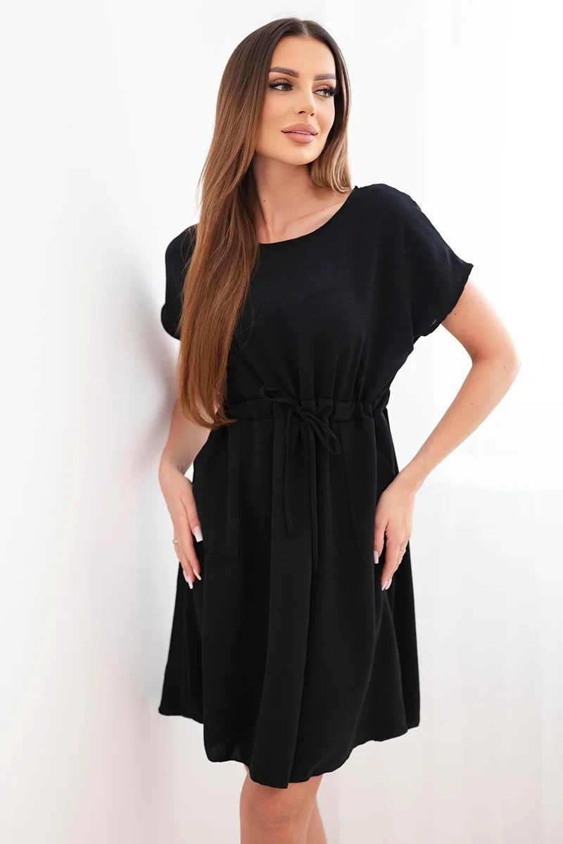 Sukienka damska z krótkim rękawem i wiązaniem w pasie to doskonała propozycja dla kobiet, które cenią wygodę i modny, swobodny styl. Luźniejszy fason zapewnia komfort noszenia, a regulowane wiązanie w talii pozwala dopasować sukienkę do sylwetki, subtelnie ją podkreślając.