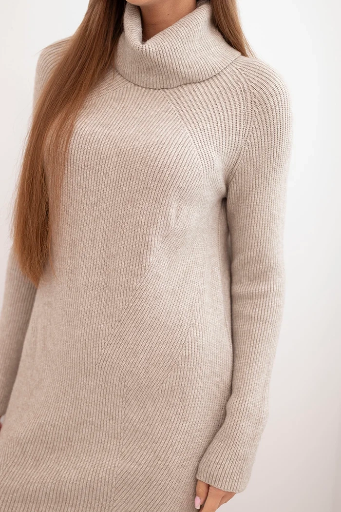 Sukienka damska z wiskozą dzianinowa z szerokim kołnierzem beżowa