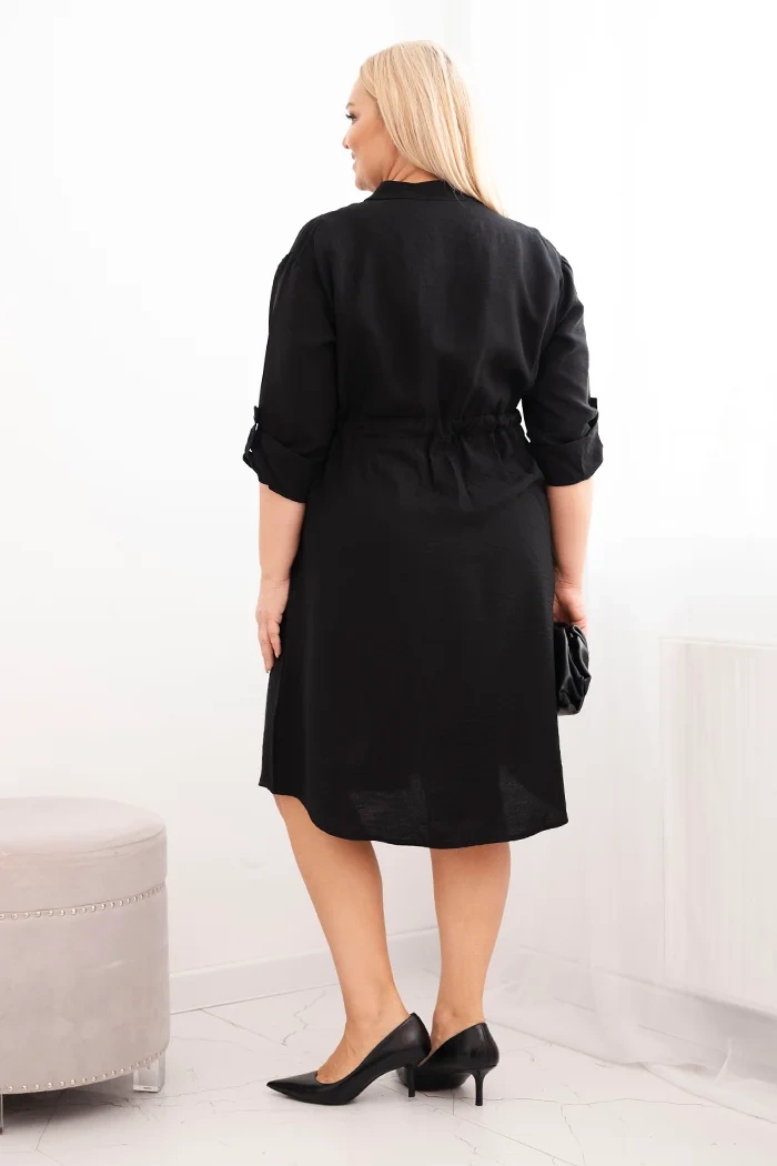 Sukienka damska z wiskozy Plus Size z guzikami i wiązaniem w talii czarna Szukasz wygodnej, stylowej i przewiewnej sukienki, która idealnie sprawdzi się na co dzień i nie tylko? Ta sukienka damska z wiskozy to propozycja dla kobiet ceniących komfort i modny wygląd w jednym! Luźny fason z praktycznym wiązaniem w talii pozwala dopasować sukienkę do sylwetki, podkreślając kobiece kształty. Guziki z przodu dodają jej klasycznego uroku, a rękawy z możliwością podpięcia czynią ją funkcjonalną i wygodną w noszeniu.