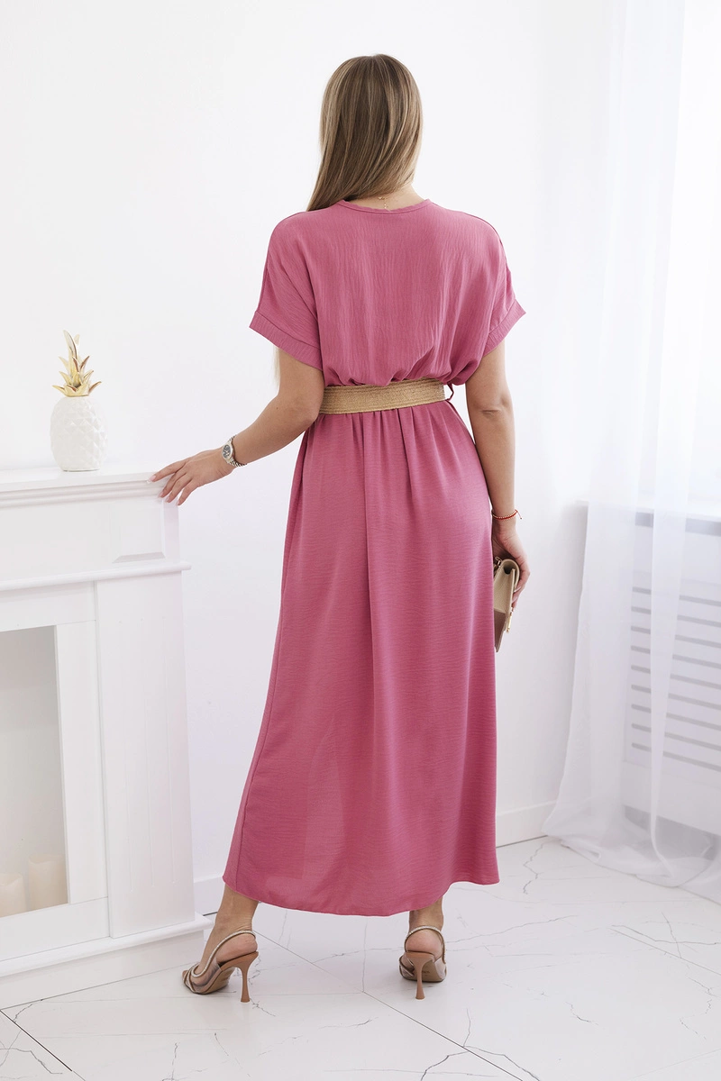 Sukienka długa z ozdobnym paskiem ciemno różowa Prezentujemy Państwu wygodną sukienkę z ozdobnym paskiem. Sukienka posiada na dole rozcięcia. Sukienka wykonana jest z wysokiej jakości materiału. Bardzo ciekawa propozycja dla wszystkich Pań. Rozmiar jest uniwersalny i będzie odpowiedni dla Pań noszących rozmiar S, M lub L.