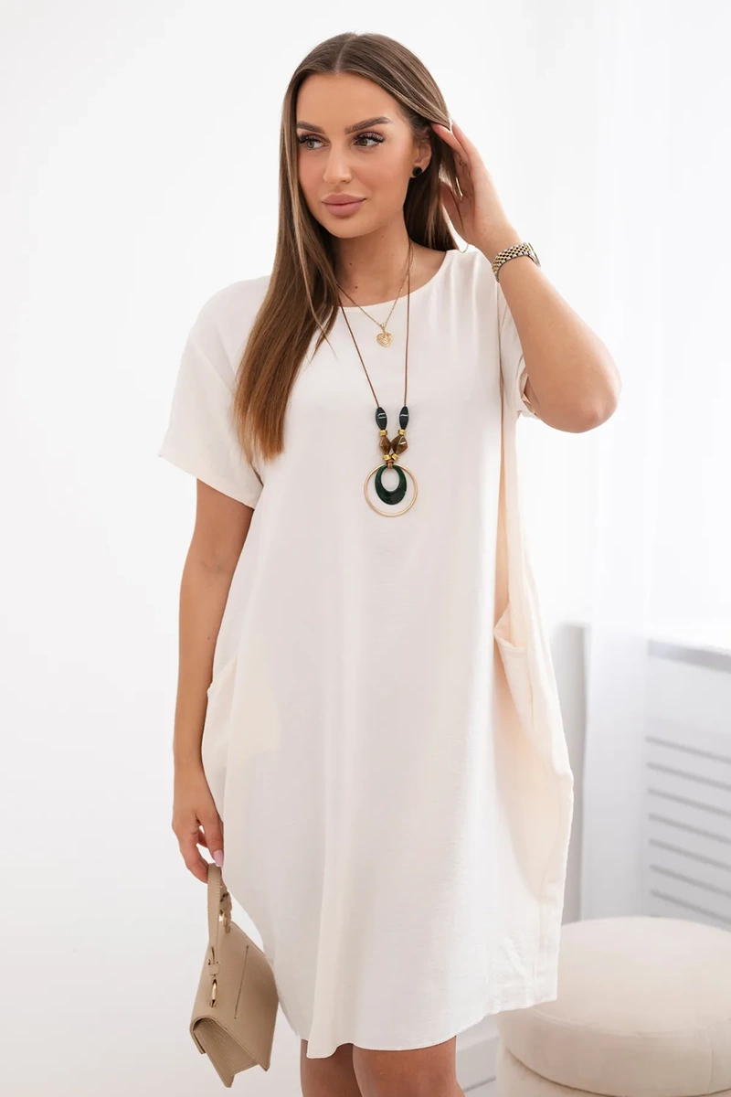 Sukienka z kieszeniami i wisiorkiem jasno beżowa