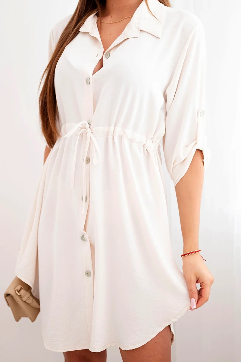 Sukienka z zapięciem na guziki i wiązaniem w talii jasno beżowa