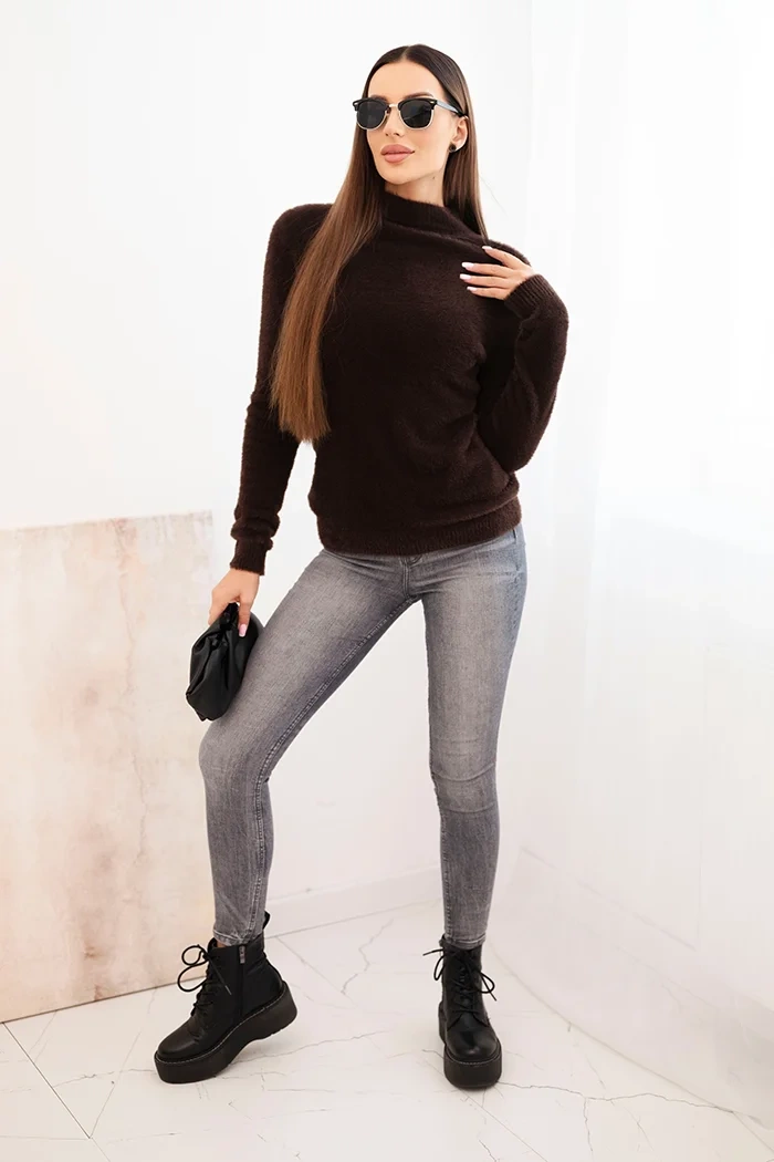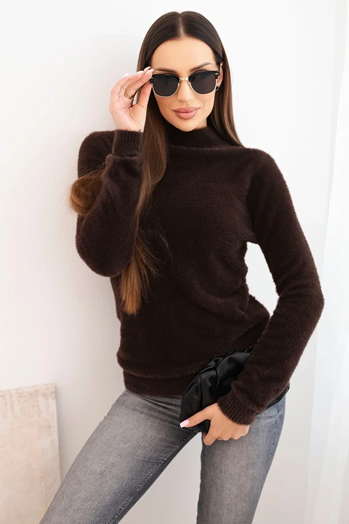 Sweter damski alpaka z półgolfem brązowy to doskonała propozycja dla kobiet ceniących sobie połączenie klasyki i komfortu. Wykonany z wyjątkowo miękkiej, przyjemnej w dotyku dzianiny, świetnie sprawdzi się zarówno na co dzień, jak i do pracy czy spotkanie z przyjaciółmi. Gładki fason i brak dodatkowych zdobień nadają mu ponadczasowego charakteru, który z łatwością dopasujesz do jeansów, spódnicy czy materiałowych spodni.