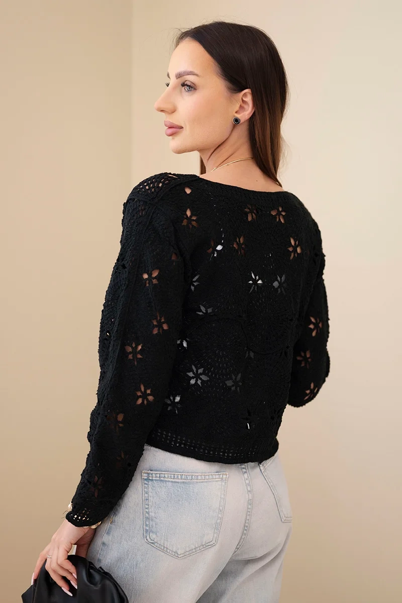 Stylowy sweter damski o wyjątkowym, ażurowym splocie to doskonała propozycja dla kobiet ceniących oryginalny design i wygodę. Model wyróżnia się efektownym, rękodzielniczym wzorem z motywem kwiatowym, który nadaje całości romantycznego i modnego charakteru. Dzięki lekkiej, przewiewnej strukturze świetnie sprawdzi się w sezonie przejściowym – wiosną oraz jesienią, a także podczas chłodniejszych letnich wieczorów.