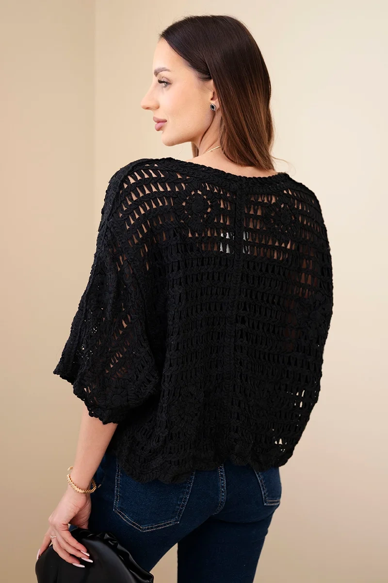 Lekki i stylowy sweter damski o ażurowym splocie to idealna propozycja na cieplejsze dni. Model wyróżnia się wyjątkowym, dekoracyjnym wzorem, który nadaje mu subtelnego i kobiecego charakteru. Dzięki przewiewnej strukturze materiału sweter zapewnia komfort noszenia nawet w cieplejsze dni, jednocześnie prezentując się niezwykle modnie.