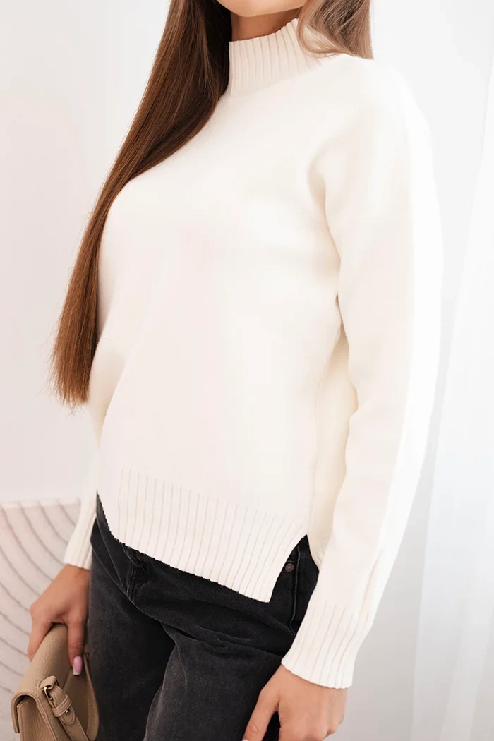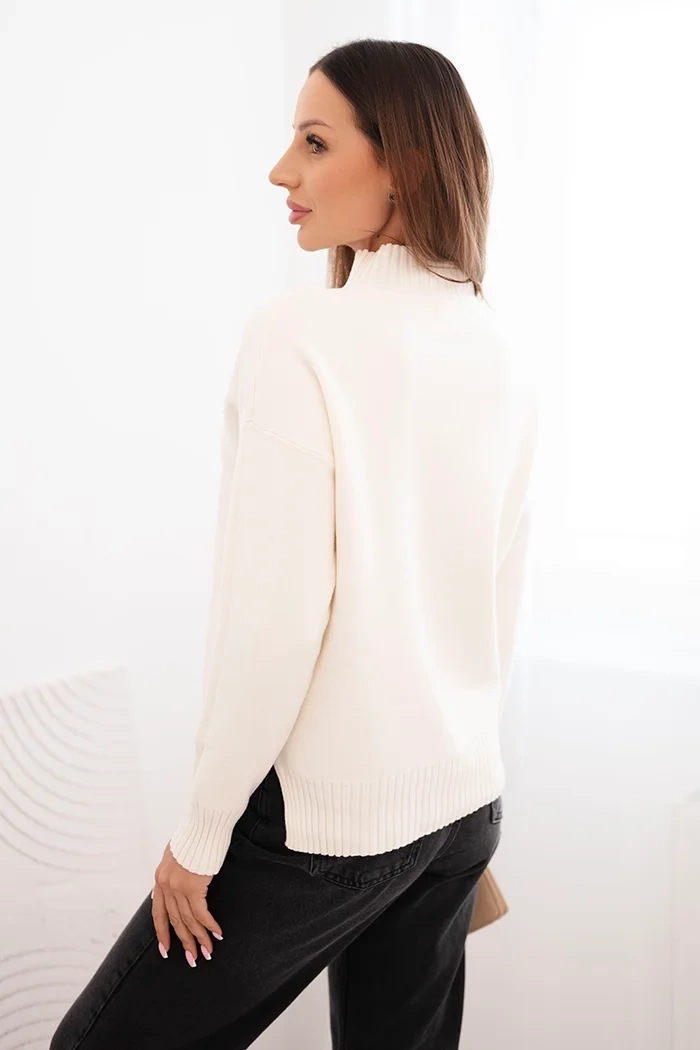 Sweter damski z półgolfem wiskozowy o luźnym kroju ecru