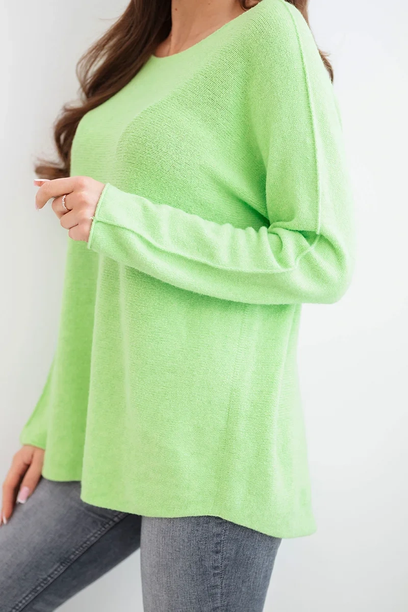 Sweter damski z wiskozy z długim rękawem i okrągłym dekoltem jabłkowy to idealny wybór dla kobiet ceniących wygodę, kobiecy styl i prostotę w codziennych stylizacjach. Miękki materiał zapewnia komfort noszenia, a klasyczny fason z okrągłym dekoltem i długim rękawem sprawia, że model ten doskonale sprawdzi się do pracy, na spacer czy w domowym zaciszu. Subtelnie rozszerzany ku dołowi, dobrze układa się na sylwetce i pasuje do spodni, legginsów i spódnic.