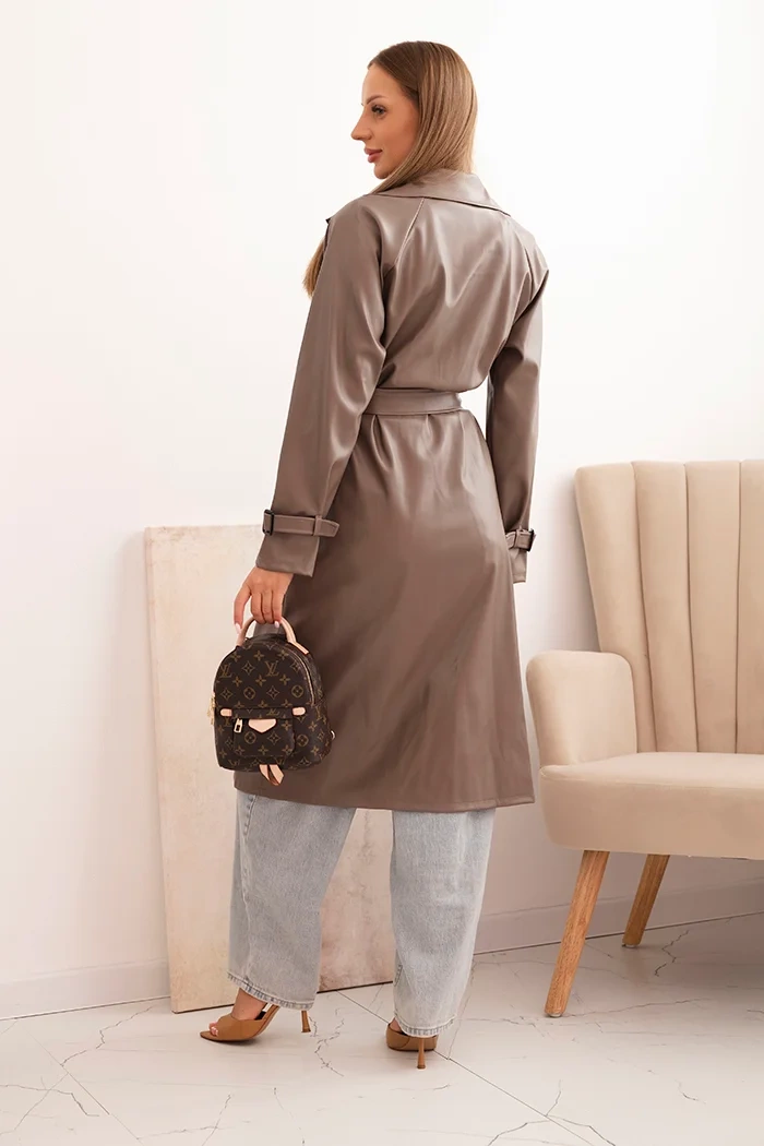 Trencz damski z ekoskóry z klasycznym kołnierzem i wiązanym paskiem fango